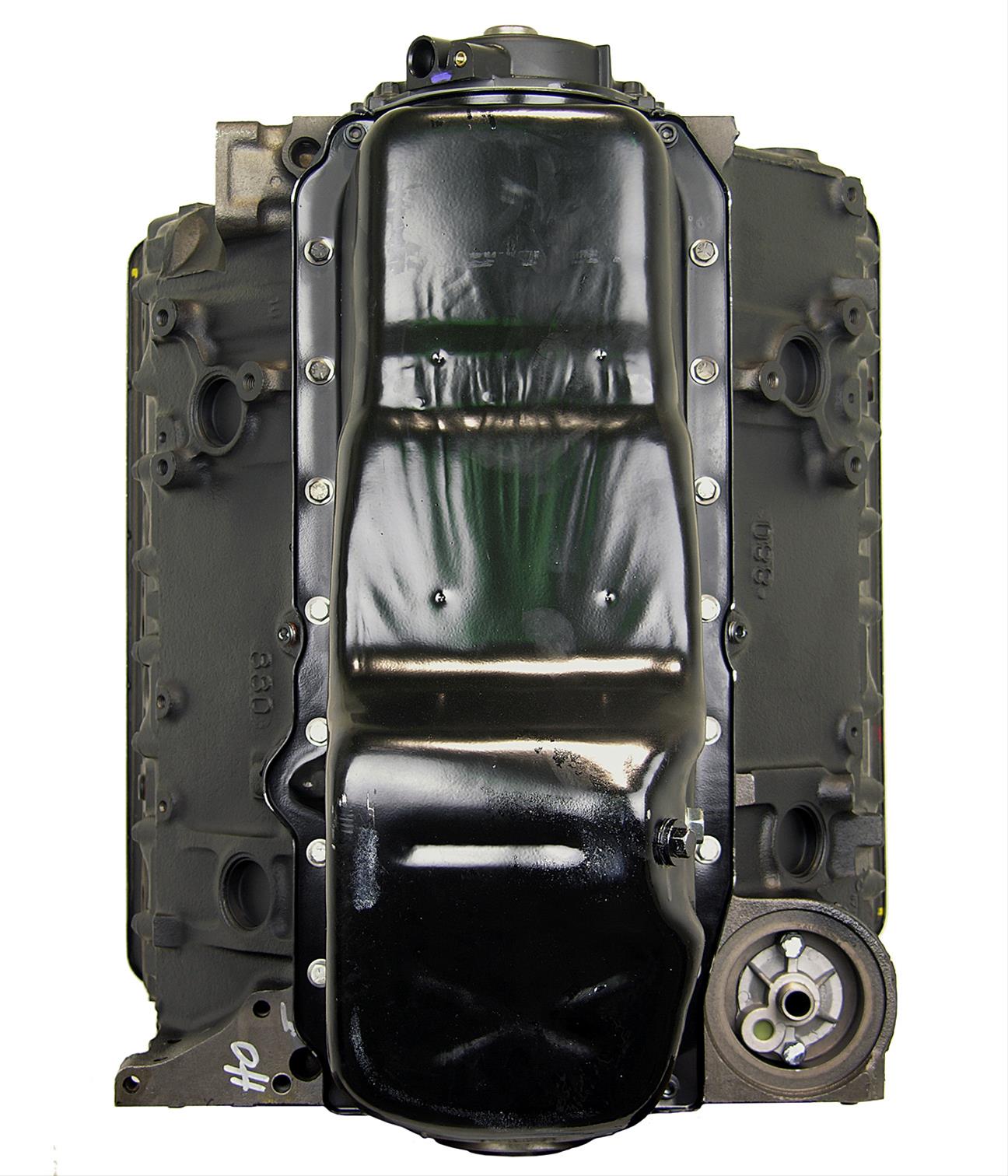 Notes: Engine includes oil pump and gasket. Features Vortec cylinder heads and 2 bolt main bearing caps. Electric fuel pump required. Block casting number of 880. With front cover crank sensor hole.
