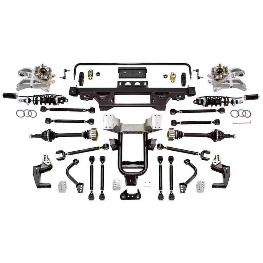 The DECAlink™ Independent Rear Suspension features no compromises and exclusive Detroit Speed suspension geometry for superior handling and ride quality. The IRS utilizes modern CV axle shafts and hub bearings, keeping suspension loads from being transmitted through the axle shafts. The DECAlink™ IRS works with an original 17-spline differential assembly or a Hammerhead 12-bolt differential. No body modifications are required on 1968-79 models while the suspension is offset inboard for additional tire clearance. All suspension link lengths are adjustable and the kit has adjustments for rear anti-squat geometry and roll center height. The suspension points are hard mounted to eliminate stock rubber mounted suspension deflection.It comes with forged in the USA Detroit Speed aluminum uprights and a two-piece cast aluminum/steel cradle assembly which eases differential housing removal. DSE/JRi “Detroit Tuned” Coilover shocks/springs allow spring rate tuning and ride height adjustments. The kit includes a rear anti-roll bar and uses OEM cross-axis pivot bushings at all pivot points. The kit also includes Torrington bearings and a spanner tool for easy spring height adjustments.Base ShockThe DSE/JRi ‘Detroit Tuned’ base shock is a ‘pure blood pedigree’ racing shock in its most efficient form as a non-adjustable unit. Although non-adjustable, it shares all the increased dynamic responses of all the JRi adjustable models while providing excellent ride quality on the street. Rear Spring Rate: 550lbs/inRear Spring Free Length: 8inThe axle shafts are rated to 600Hp, and the factory 17-spline differential is recommended to only 400Hp. Upgrade to Part # 041741DS for the DSE 30-spline differential if you have 400 to 600Hp. Upgrade to Part # 041742DS if you have more than 600Hp.