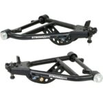 * Lower StrongArms feature a double sheer lower mount for increased strength. They also are powdercoated black and fully assembled with ball joints, bushing, and cross shafts.